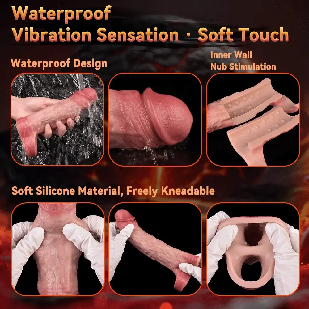 Discover our vibrating silicone penis extender, designed to increase your penile length by 2.17 inches. Crafted from soft, highly elastic platinum-grade silicone, this product offers a comfortable, snug fit that effectively enhances sexual pleasure for both partners. Furthermore, its soft glans design is engineered to minimize any potential discomfort.